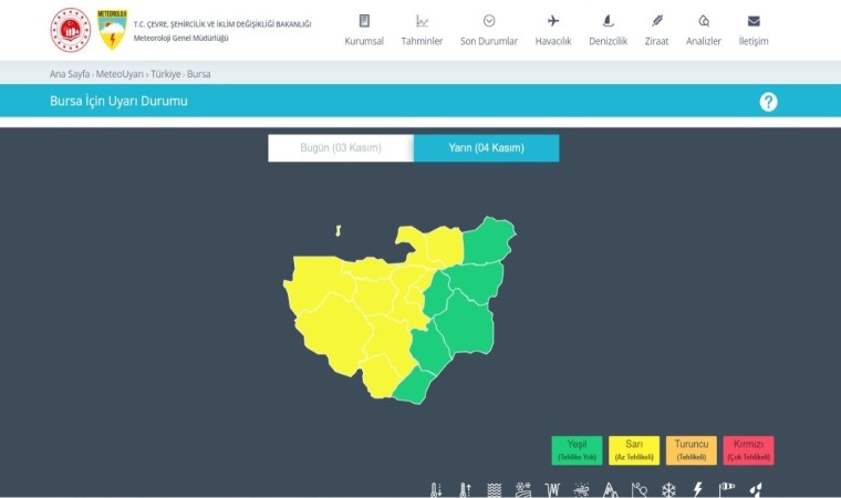 Meteoroloji Genel Müdürlüğü Bursa için sarı uyarıda bulundu.