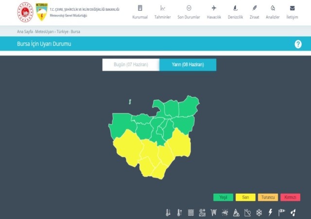 METEOROLOJİ GENEL MÜDÜRLÜĞÜ BURSA'DA ALTI İLÇE İÇİN SARI UYARIDA BULUNDU.