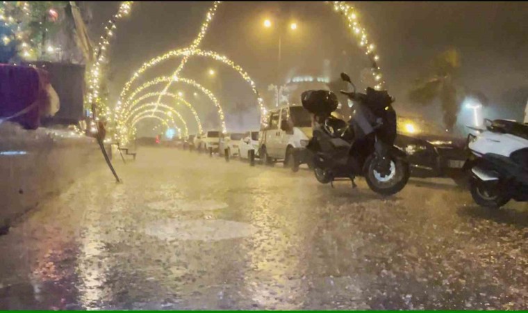 Hatay’ın İskenderun ilçesinde aniden bastıran dolu ve sağanak yağış, hayatı olumsuz etkiledi.