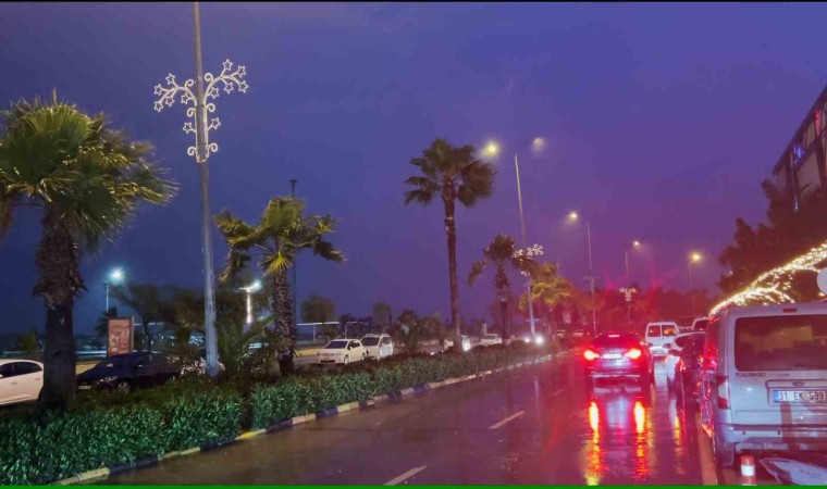 Meteoroloji Genel Müdürlüğü tarafından yapılan uyarıların ardından Hatay’da gün boyu yağışlı hava etkili oldu. İskenderun ilçesinde sağanak yağış, fırtına ve ardından dolu yağışı etkili oldu. Bardaktan boşanırcasına yağan yağmur nedeniyle sürücüler zor anlar yaşadı, ardından etkili olan dolu sebebiyle ilçe merkezi tamamen beyaza büründü. Yaklaşık yarım saat devam eden yağış da herhangi bir olumsuzluk yaşanmadı. Çakan şimşekler ise adeta geceyi gündüze çevirdi. Yağışların durmasıyla birlikte zor anlar yaşayan vatandaşlar evlerine döndü.