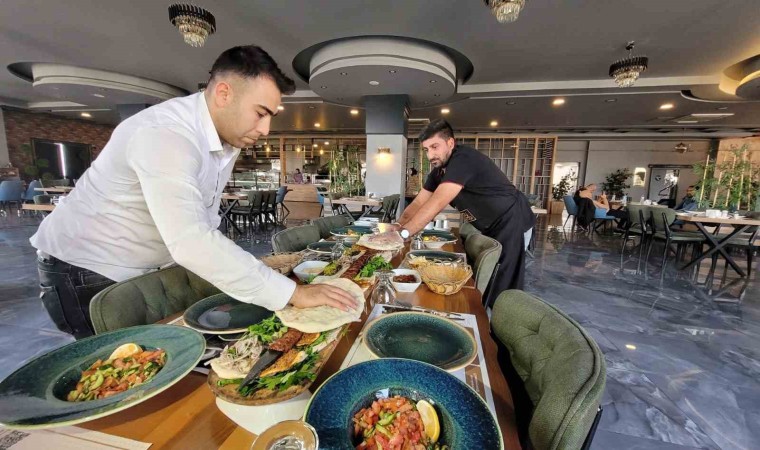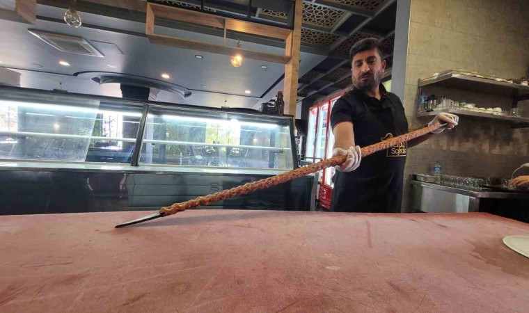 Elazığ’da zırh kebabı yemek isteyenlerin geldiği bir işletmede özel siparişler üzerine uzunluğu 1 ile 5 metre arasında olan kebaplar müşterilerin beğenisine sunuluyor.