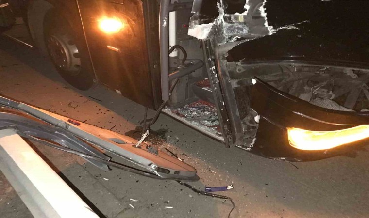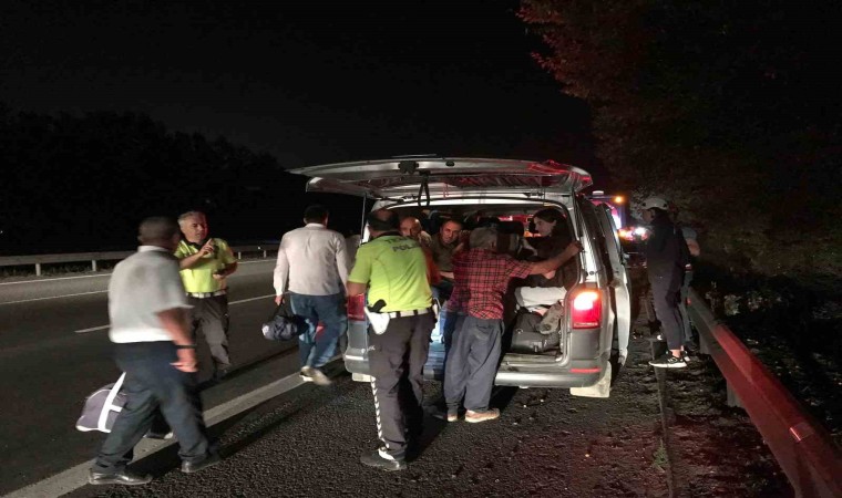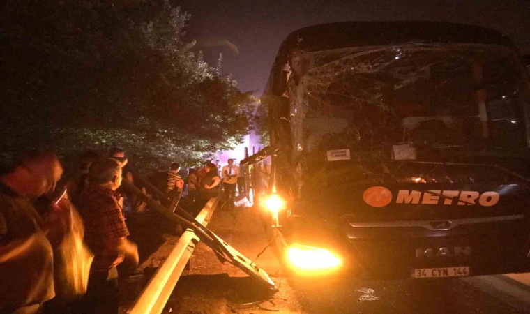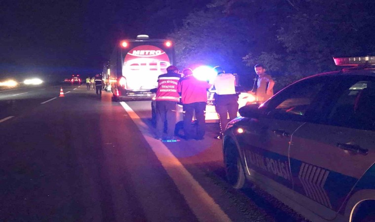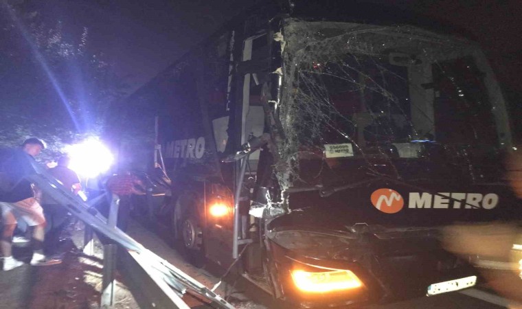 Anadolu Otoyolu Sakarya geçişinde sürücüsünün direksiyon başında uyuya kaldığı iddia edilen Metro Turizm firmasına ait yolcu otobüsü, önünde seyir halinde olan tırın dorsesine çarptı. Faciadan dönülen kazada, 1 kişi yaralandı.