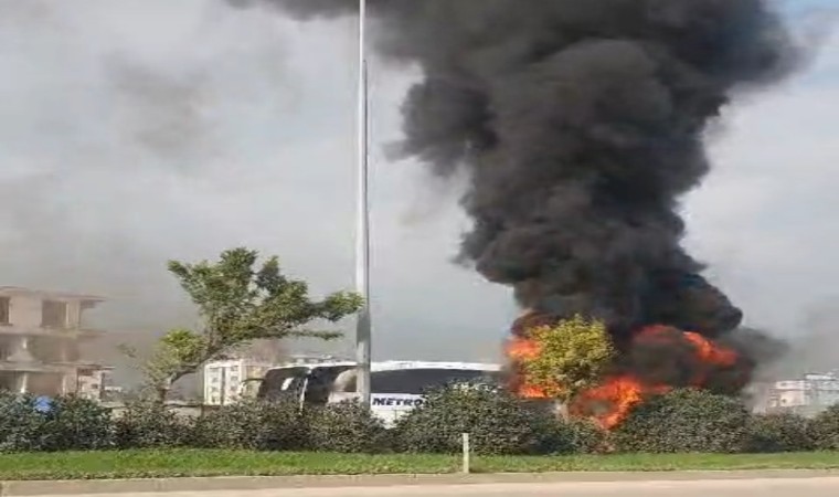 Hatay’ın Antakya ilçesinde seyir halindeki Metro Turizme ait yolcu otobüsü alev alev yandı. Ekiplerin müdahalesi devam ediyor.
