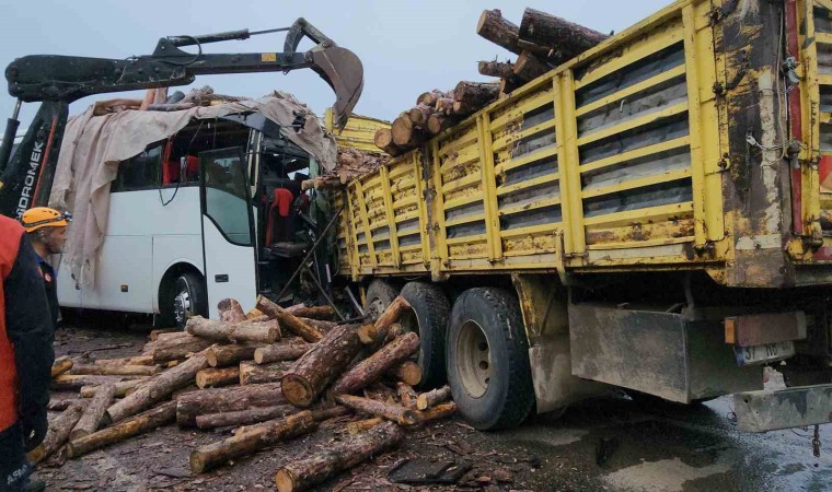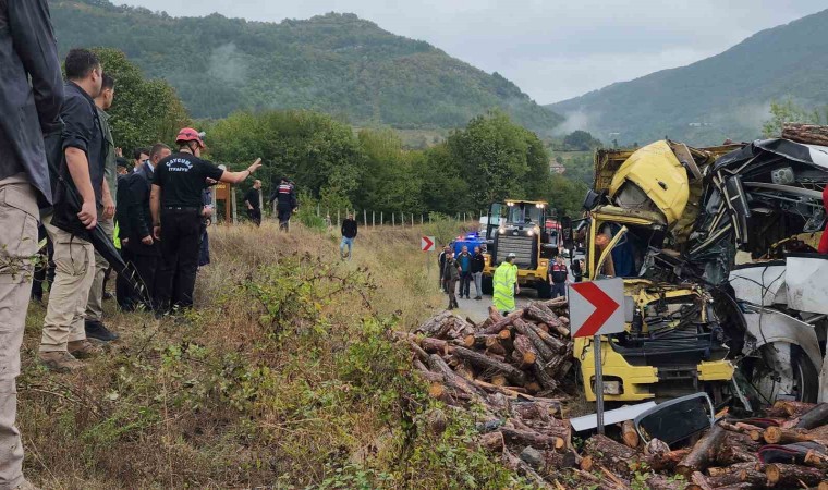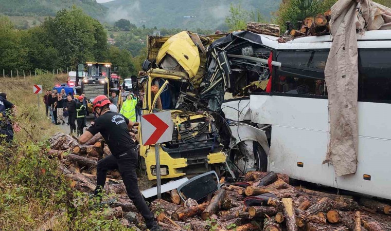 Zonguldak’ın Gökçebey ilçesinde şehirlerarası yolcu otobüsü tomruk yüklü kamyonla çarpıştı. Kazada her iki aracın sürücüsü olay yerinde hayatını kaybetti, 23 kişi de yralandı. Yaralılar Gökçebey Devlet Hastanesi’nde tedavi altına alındı.