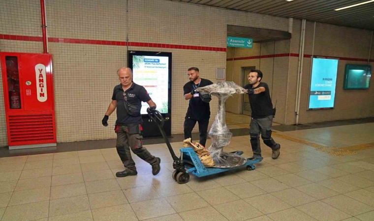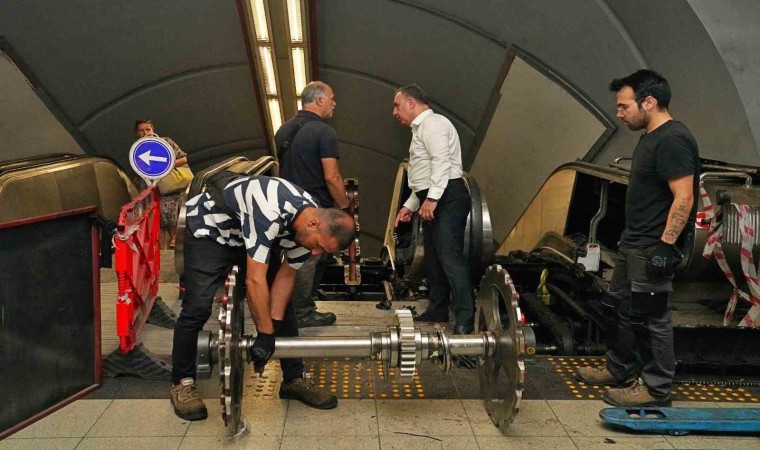 Üçyol İstasyonu’nda kazanın yaşandığı yürüyen merdivenin hizmete alınması için hasar gören parça yeniden üretilerek istasyona ulaştırıldı. Büyük bir titizlikle yürütülen çalışma hakkında konuşan Ertan Sayılkan, “Hasarın yaşandığı Üçyol İstasyonu’ndaki yürüyen merdivende diğer parçaların üretimi tamamlandı. Montajı yapılıyor. Ben ve bütün ekip arkadaşlarım çalışmaları yakından ve hassasiyetle izliyoruz” dedi.
