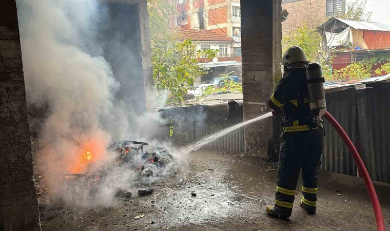 Düzce’de araç parkının üst katında bulunan metruk binada çıkan yangın, araç sahiplerini korkuttu.