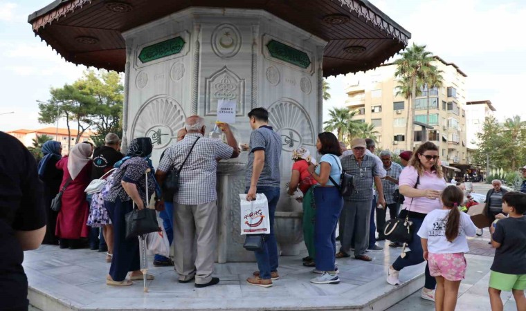 Nazilli Belediyesi, Hazreti Peygamberimizin dünyaya teşrif günü olan Mevlid Kandili dolayısıyla kentin simgeleri arasında yer alan Osmanlı Çeşmesi’nden 10 bin kişilik şerbet akıttı.