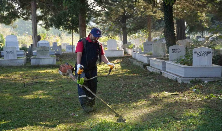 Düzce’de kent genelinde düzenli olarak mezarlık ve yeşil alanlarda bakım, budama ile düzenleme çalışmaları yapılıyor.