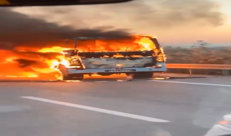 Bursa’da mevsimlik işçi taşıyan servis aracı seyir halindeyken alev alev yandı.