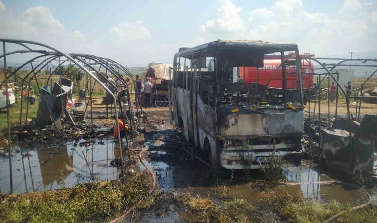 Edinilen bilgiye göre, Bursa’nın Yenişehir ilçesine bağlı Çeltikçi Mahalle kırsalında kurulan mevsimlik işçilerin yaşadığı çadırlarda henüz bilinmeyen sebeple yangın çıktı. Kısa sürede tutuşan çadırlara Bursa Büyükşehir Belediye itfaiye ekipleri müdahale etti. Yangın kısa sürede kontrol altına alınarak söndürüldü. İşçileri tarlaya götüren bir midibüs ve 3 çadır küle dönerken, bazı çadırlar da hasar aldı. Çadır içindeki beyaz eşyalar da yandı.