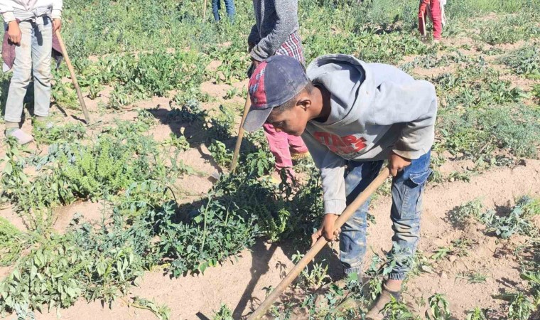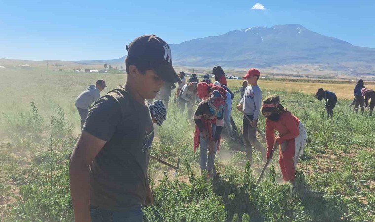 Sabahın erken saatlerinde çapa işine başlayan işçiler, akşam geç saatlere kadar çalışıyor. Genç yaşlı evin bütçesine katkı sağlamak için sıcak altında çalışan işçiler için tarlalar ekmek kapısı oldu.