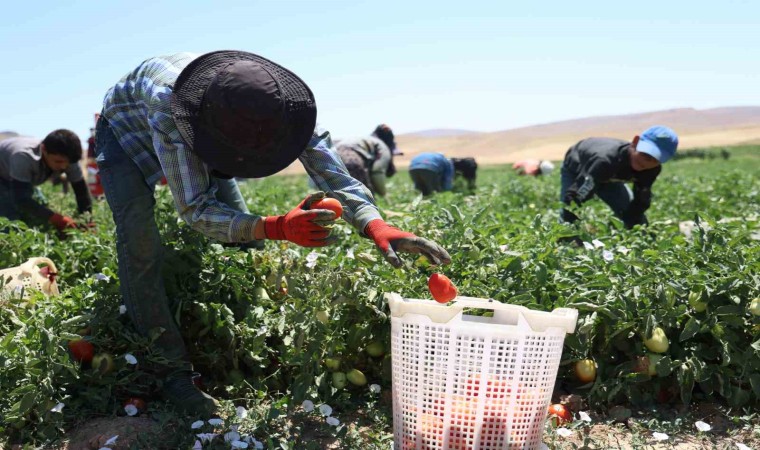 Elazığ’da hasadın devam ettiği 3 bin dönüm domates tarlasında mevsimlik tarım işçileri, kavurucu sıcak altında ekmek mücadelesi veriyor.