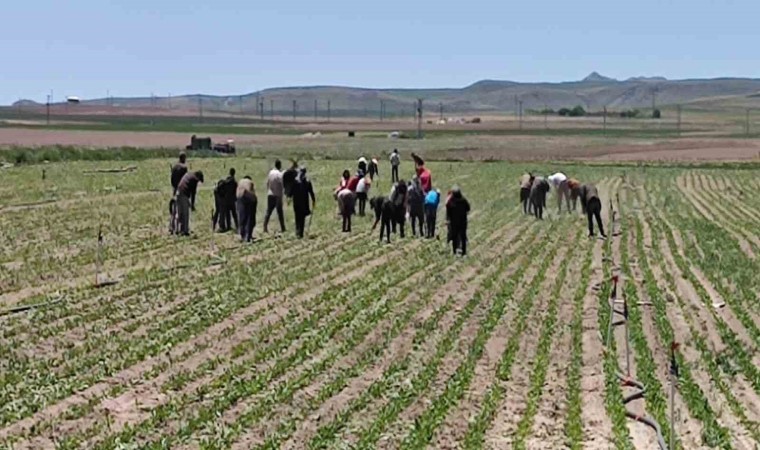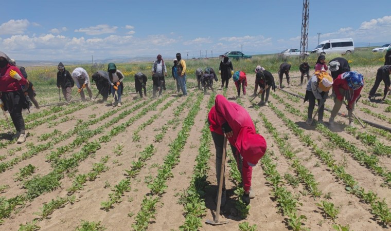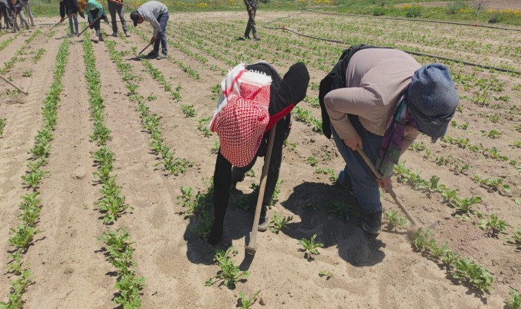 Çalışmalarını sürdüren tarım işçileri, evlerinden uzakta çapa yaparak geçimlerini sağlıyor. Sabahın erken saatlerinden itibaren çocuklarıyla birlikte tarlaların yolunu tutan işçiler, akşama kadar yoğun ve yorucu mesai harcıyor. Kimi kundaktaki bebeğiyle kimi çocuklarıyla ekmeğinin peşine düşen işçiler, bin bir zahmetle çalışıyor.