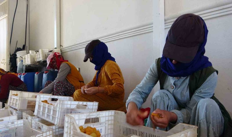 Dünyadaki kuru kayısı üretiminin yüzde 85’inin yapıldığı Malatya’da mevsimlik tarım işçilerinin kayısı mesaisi sürüyor.