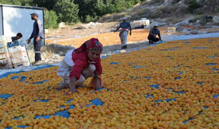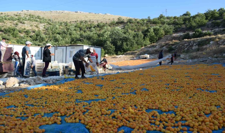 Günün ilk ışıklarıyla kayısı bahçelerinde toplanan ürünler kükürtleme çalışmalarının ardından güneşte kurutularak çekirdekten ayrılma işlemlerinin tamamlanmasıyla birlikte ihracat öncesi son halini alıyor.