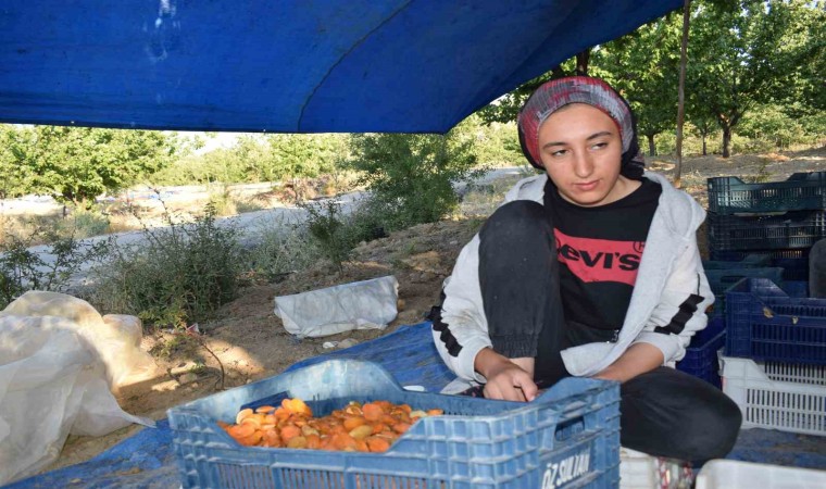 Akçadağ ilçesi Resuluşağı Mahallesi’nde kayısı hasatında çalışan mevsimlik tarım işçilerinden kardeşler Elif ile Aslan Kılıç, 800 TL yevmiye ile çalıştıklarını belirterek, üç haftadır devam eden hasatta sona geldiklerini kaydetti.