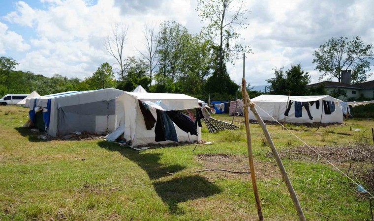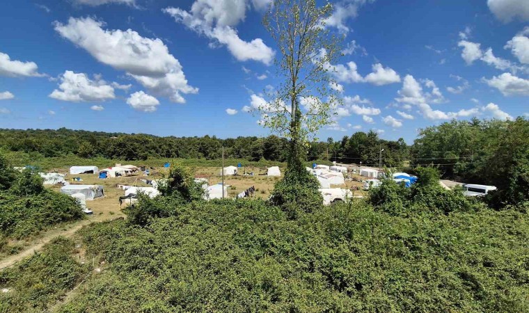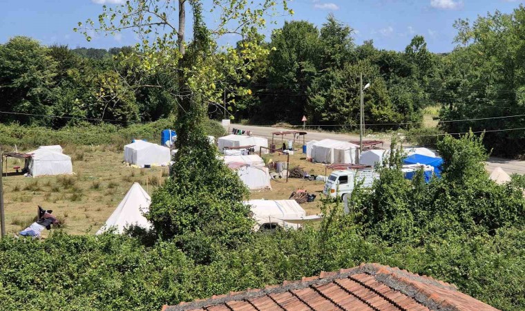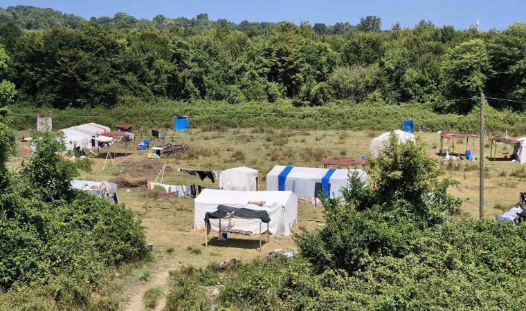 Farklı şehirlerden Samsun’a fındık toplamak için gelen mevsimlik tarım işçileri, belirli bölgelere kurdukları çadırlarda konaklıyor.
