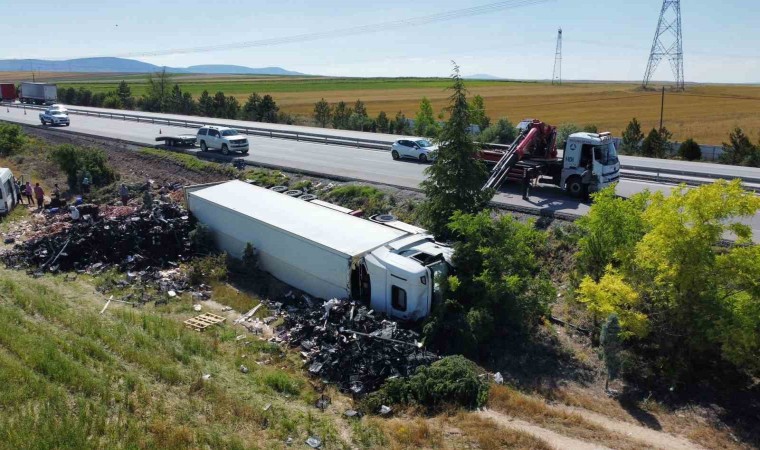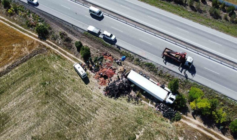 Afyonkarahisar’da kontrolden çıkarak devrilen meyve yüklü tırda 2 kişi yaralanırken, tonlarca meyvenin önemli bir kısmı ise ise ziyan oldu.