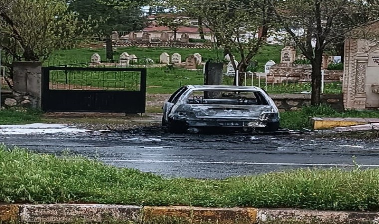 Mardin’in Midyat ilçesinde mezarlığa giden ailenin otomobili alevlere teslim oldu.