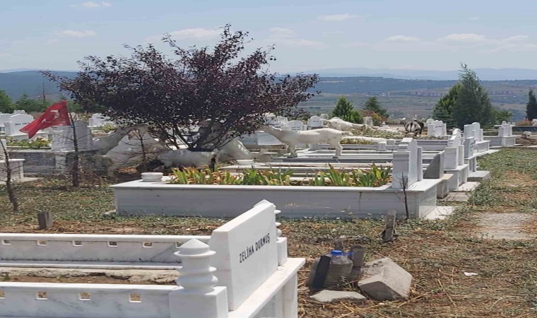 Mezarlık içerisine salınan küçükbaş hayvanları gören vatandaşlar duruma tepki gösterdi.