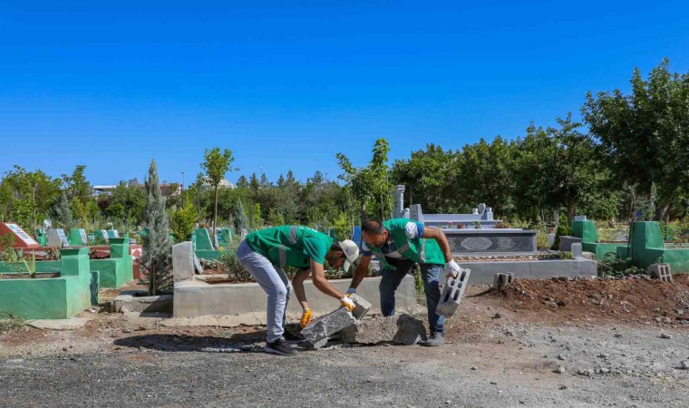 Diyarbakır Büyükşehir Belediyesi, Kurban Bayramı öncesinde mezarlıklarda temizlik çalışması gerçekleştirdi.