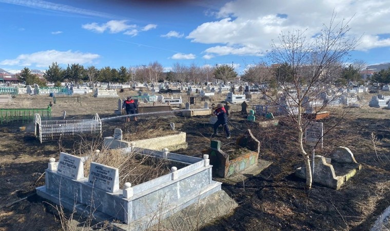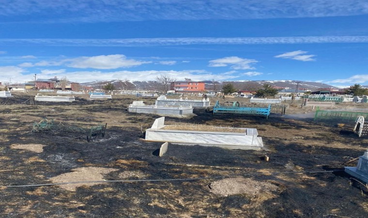 Yangının çıktığı mezarlık alanının bir kısmı küle dönerken, konuya ilişkin inceleme başlatıldı.