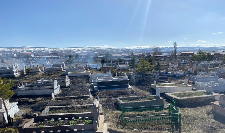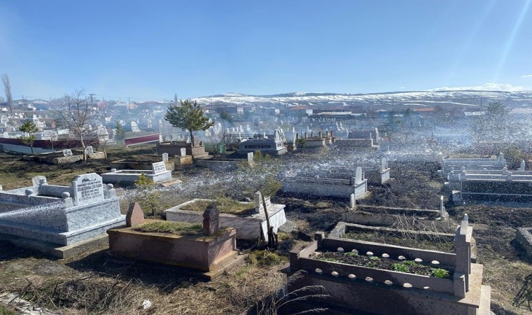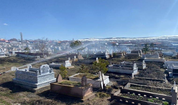 Yangının çıktığı mezarlık alanının bir kısmı küle dönerken, konuya ilişkin inceleme başlatıldı.
