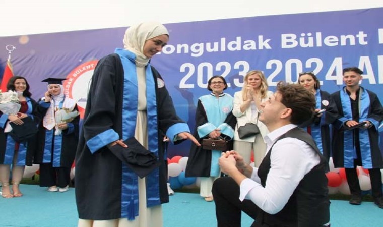 Zonguldak Bülent Ecevit Üniversitesi Devrek, Çaycuma ve Gökçebey meslek yüksekokulların mezuniyet töreni, evlilik teklifine sahne oldu.