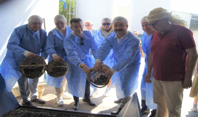 Ekrem Gökay Yüksel ve MHP Balıkesir İl Başkanı Niyazi Tunç, yılın sıkılan ilk zeytinlerinden elde edilen ilk zeytinyağının şişelenmesini de beraberindekilerle birlikte heyecanla izledi.
