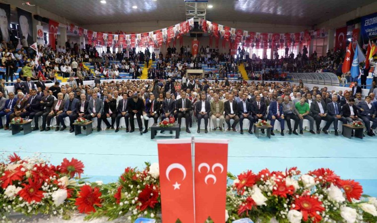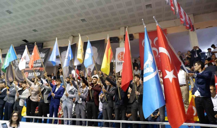 MHP Erzurum İl Başkanlığı 14. Olağan Kongresi, Kazım Karabekir Kapalı Stadı’nda teşkilat mensupları ve delegelerin yoğun katılımı ile başladı. Kongreye Cumhur İttifakı bileşenlerinin il başkanları başta olmak üzere birçok davetli katıldı. Mehter Marşı ile başlayan kongrede MHP Genel Başkanı Devlet Bahçeli’nin gönderdiği mesaj okundu. Bahçeli mesajında, “Aranızda olamasam da kalbimin sizlerle beraber çarptığını özellikle bilmenizi istiyorum. Tarih ve coğrafyayı birbirine bağlayan, Cumhuriyet’in yeni yüzyılında yeni bir Türk destanı yazmak ve bunu da yaşatmak azminde olan bir irade hamdolsun sivrilmiş, serpilmiş ve seri halde çalışmaya koyulmuştur. Bu iradenin kaynağı hem millettir hem de kutlu ecdadımızın bizlere miras bıraktığı ülkülerdir. Türkiye’nin ayağından çekiştirmeyi, iç çekişmelere gömülmesini, sanal korkuluklara ve sahte korkulara boyun eğmesini projelendiren ilkellerin, bu projeye sponsorluk ve piyonluk yapan işbirlikçilerin sonu gelmiş, nihayet devri kapanmıştır. Türk ve Türkiye Yüzyılı hedefinin gerçekleşmesiyle gelecek nesiller muasır, muzaffer ve müreffeh bir ülkede güvenle ve onurla yaşayacaklardır. 100’ncü yıldönümüne ulaştığımız Türkiye Cumhuriyeti ilelebet payidar kalacaktır. Bugün atacağımız her hayırlı adım önümüzdeki yeni yüzyılı imar ve ihya edecektir. Bugün yapacağımız her fedakârlık yeni yüzyılın süper güç Türkiye’sinin çatısını örecek, sütunlarını dikecektir. Milliyetçi Hareket Partisi’nin siyaset felsefesinin özü ve öznesi insandır. Daha mutlu, daha huzurlu, daha güvenli, daha zengin, daha iyi hayat şartlarına ulaşmış insan gayemizden, aynı şekilde toplum ve millet amacımızdan taviz vermeden haklı ve hürriyet merkezli mücadelemizi istikrarlı şekilde sürdürmekte kararlıyız” dedi.