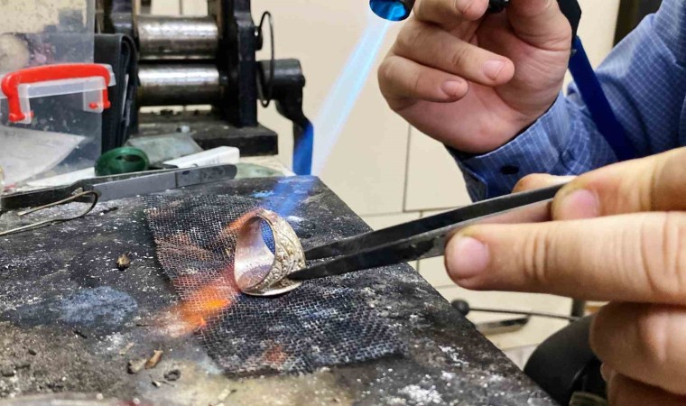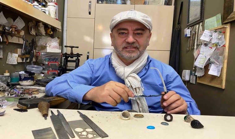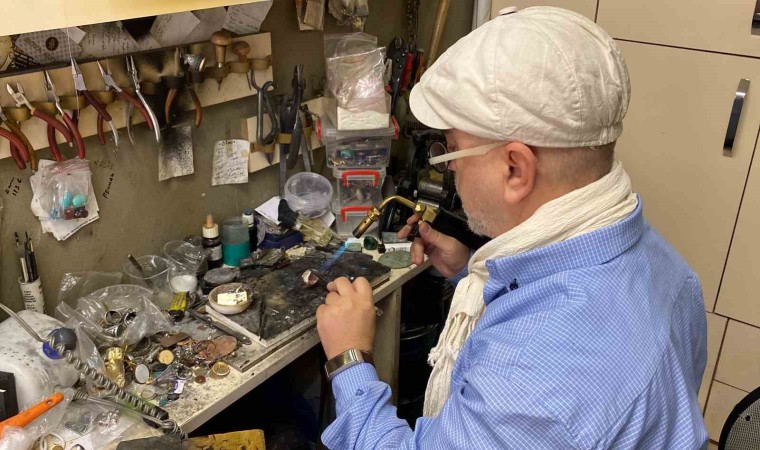 1980’li yılların başlarında mesleğe başladığını, ilk olarak imalat, daha sonra da özel tasarımlar yaptığını anlatan Servet Küçükdemirel, “İlk olarak mesleğe 1981 yılında başladım. Sonrasında imalat, özel tasarımlarla bugüne kadar geldik. Aşağı yukarı 40 yıllık bir serüven. Devamlı siyasi liderlerin işlerini yapıyoruz, sanatçılarla da çalışıyoruz. İşimiz özel tasarım yapmak. Devlet bey ile artık bu bir gelenek haline geldi, her yıl yapıyoruz. Geçen yıl da ’Kızılelma’ diye bir yüzük yapmıştık. Bu yıl da tabii muhteşem yüzyılımız var. Cumhuriyet’in 100. yılı. Devlet beye yapmasak olmazdı. 100. yıla özel güzel bir yüzük yaptık. ’Turan’ ismini taşıyor. Gerçekten kendisi de çok beğendi. Sonrasında rozetini de yaptık biz bunun. Bizi de davet etti sağolsun. Oraya gittik, kendisine yüzüğünü teslim ettik, kahvesini içtik. Yüzük tamamen Türklüğü anlatan, Türkiye Cumhuriyeti’ni anlatan güzel bir tasarım oldu. Üstünde bozkurt, bozkurtu çevreleyen hilal, hilalin içerisinde Türkiye Cumhuriyeti yazısı. Kenarında Göktürk alfabesiyle Türk, diğer tarafında ise Göktürk alfabesi ile Devlet Bahçeli yazıyor. Altında da 100. yıl temalı şekiller mevcut. Çok güzel oldu. Kenarlarında turkuaz taşlar biliyorsunuz Türklüğün taşıdır, kenarlarını da o taşlarla süsleyerek bir tasarım haline geldi. Bu yüzüğü kendisine verdik, çok beğendi. Cumhuriyet’in 100. yılında da yüzüğünü ve rozetini takmayı çok istediğini söyledi. Umarım takacaktır” dedi.