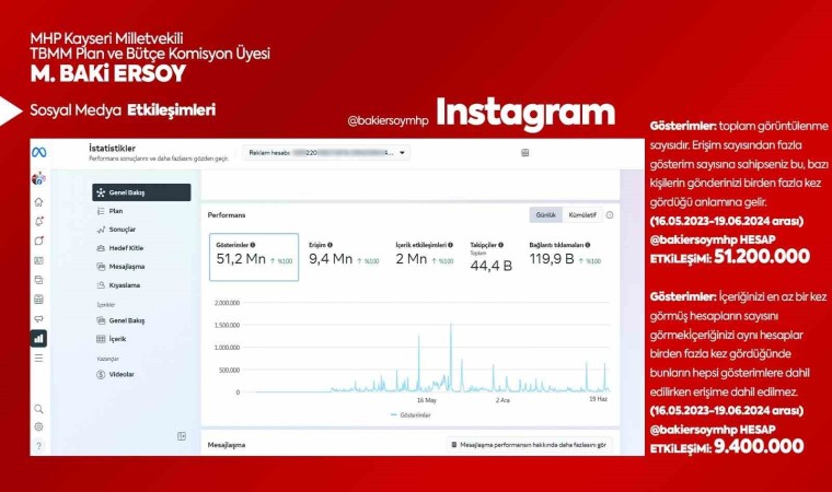 Instagram Gösterimleri; 51 milyon 200 bin