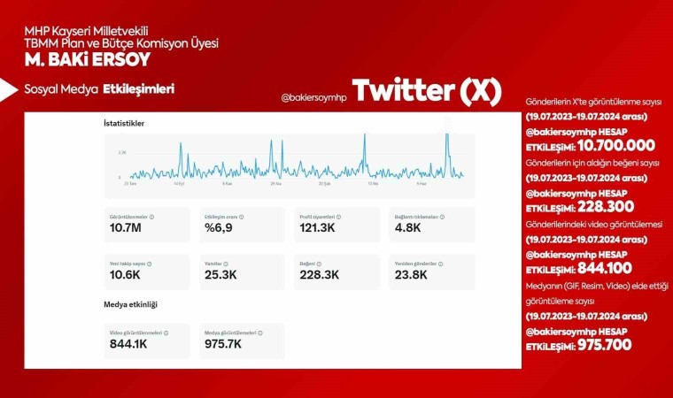 Kayseri’de sosyal medyayı en etkili kullanan milletvekilleri arasında birinci sırada gelen Milliyetçi Hareket Partisi (MHP) Kayseri Milletvekili Baki Ersoy, hem yerel hem de ulusalda büyük bir popülerliğe ulaştı.