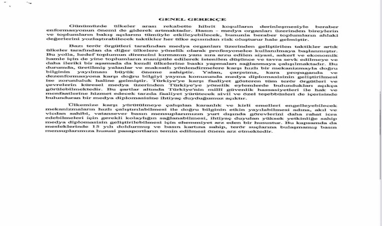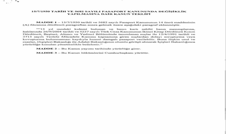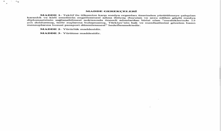 “15 yıl mesleki kıdemi bulunan basın kartı sahibi basın mensuplarına hususi damgalı pasaport verilebilmesine yönelik kanun teklifimizi meclisimize sunduk. Ülkemizin medya diplomasisini daha da güçlendirmesi gerektiği inancıyla hazırladığımız kanun teklifimizin hayırlara vesile olmasını temenni ediyorum. MHP olarak milli birlik ve beraberliğimizde kenetlendiğimiz tüm basın mensuplarımızın yanında olmaya devam edeceğiz.”