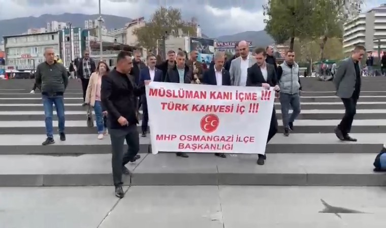 Bursa’da bir araya gelen MHP Osmangazi İlçe Başkanlığı üyeleri, İsrail’e desteğini açıklayan Starbucks’ta kahve içmeyenleri Türk kahvesi içmeye davet etti.