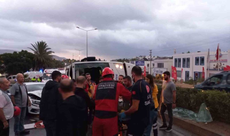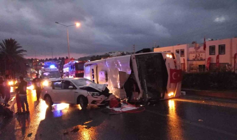 Edinilen bilgiye göre, sabah saatlerinde Konacık Jandarma Kavşağı’ndan Gümbet Kavşağı’na seyreden H.Ö. idaresindeki 48 VR 154 plakalı midibüs, yağışla kayganlaşan yolda sürücüsünün kontrolünden çıktı. Refüjde çarpıp yan yatan midibüs, karşı şeride geçti. O esnada karşı istikametten gelen 48 AJG 471 plakalı otomobil midibüse çarptı. Kazada otomobildeki 3 kişi ile midibüs şoförü yaralandı. İhbarın ardından kaza yerine 112 Acil Sağlık, itfaiye ve polis ekibi sevk edildi. Midibüste sıkışan sürücü H.Ö. ekiplerce kurtarılarak hastaneye kaldırıldı. Otomobildeki yaralılar A.A., E.A. ve 4 yaşındaki çocukları A.A. da ambulansla hastaneye kaldırıldı. Kaza esnasında midibüste yolcu bulunmadığı öğrenildi.