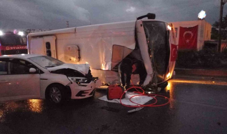 Muğla’nın Bodrum ilçesinde refüjü aşıp karşı şeride geçen midibüs, otomobille çarpıştı. Kazada 4 kişi yaralandı.
