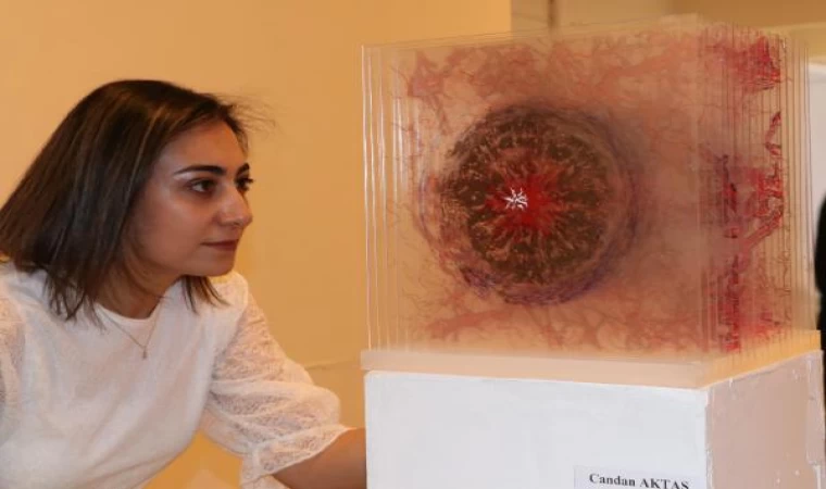 Salih TEKİN/ERZURUM, (DHA)- ERZURUM Atatürk Üniversitesi Güzel Sanatlar Fakültesi öğrencisi Canan Aktaş (35), 18 yaşından beri yaşadığı migren rahatsızlığını sanata yansıttı. Hastalığını 18 ayrı cam pleksiye işleyen Aktaş, "Tek başına bir anlam ifade etmeyen şeffaf plakalar arka arkaya dizilip orta noktadan bakıldığında bir bütün olarak anlam teşkil ediyor" dedi.