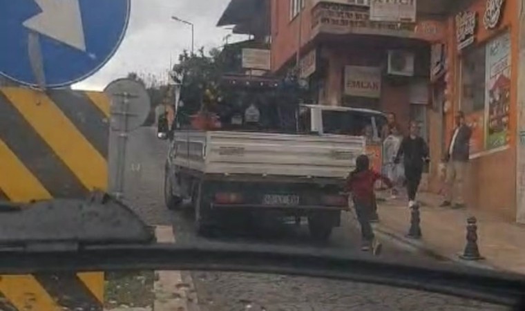 Muğla’nın Milas ilçesi Salı Pazarı mevkiinde yaşları küçük çocukların, hareket halindeki araçların arkasına tutunmaya çalıştığı tehlikeli anlar cep telefonu kamerasına yansıdı.