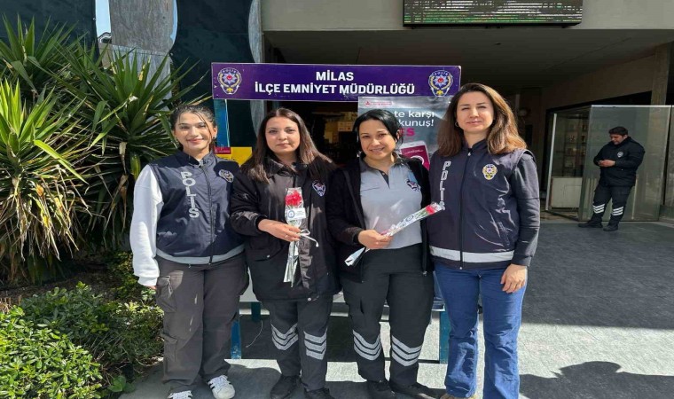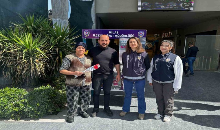 Muğla’nın Milas ilçesinde polis ekipleri kurdukları stantta kadın vatandaşlara gül dağıttı.