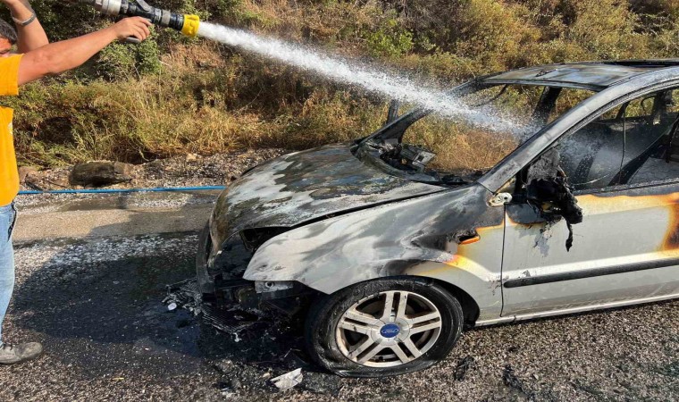 Muğla’nın Milas ilçesinde Yatağan karayolu üzerinde seyir halinde olan bir otomobil, henüz belirlenemeyen bir sebeple aniden alev aldı.