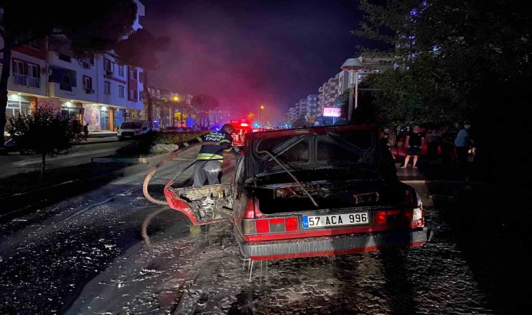 Olay, Milas’ın İsmetpaşa Mahallesi Atatürk Bulvarı üzerinde meydana geldi. Edinilen bilgiye göre, seyir halindeki 57 ACA 996 plakalı Tofaş marka otomobilde henüz bilinmeyen bir nedenle yangın çıktı. Araç sürücüsü otomobili yolun sağına çekerek kendisini son anda dışarıya attı. Kısa sürede büyüyen alevler tüm otomobili sardı. Yangını gören vatandaşlar durumu 112 Acil Çağrı Merkezi’ne bildirdi. İhbar üzerine bölgeye itfaiye ekipleri sevk edildi. Olay yerine gelen ekipler, alevlere müdahale ederek yangını söndürdü. Soğutma çalışması gerçekleştirilirken, otomobil yangında hurdaya döndü. Olay sırasında trafiğe kapanan yol, itfaiye ekiplerinin çalışmalarını tamamlamasının ardından yeniden trafiğe açıldı. Yangınla ilgili inceleme başlatıldı.