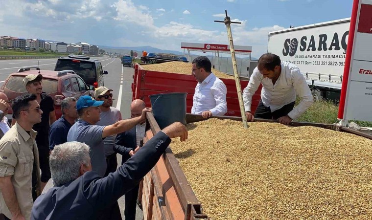 Traktörlerin römorklarında bulunan tahılları da kontrol eden Çalkın, daha sonra Selim’den ayrıldı.