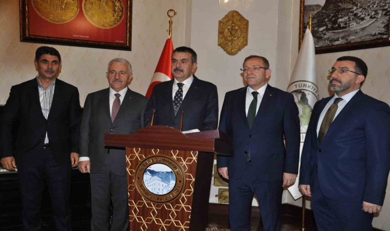 Milli Eğitim Bakanı Yusuf Tekin, “Türkiye’nin biriken problemlerini çözmek üzere 2 büyük lider Cumhurbaşkanımız Recep Tayyip Erdoğan ve MHP Genel Başkanı Devlet Bahçeli Türkiye’nin geleceğini inşa etmek üzere bütün siyasi hırsları, bütün siyasi egoları bir taraf bırakarak memleket menfaatleri için bir araya geldikler ve Cumhur İttifakı oluşturdular. Şu an Cumhur İttifakı’nın yerelde 1 adayı var. O da Ötüken Senger, Ötüken hocamıza destek olmak. Burada süreçle ilgili olarak atılacak adımları tespit etmek üzere buradayız” dedi.