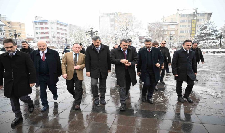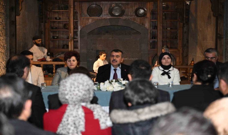 Erzurum Yakutiye Medresesi’nde Öğretmenler Odası Buluşmasında konuşan Milli Eğitim Bakanı Yusuf Tekin, Erzurum’da Maarif Kongresi düzenleyeceklerini ifade etti. Bakan Tekin, "Bu yıl ilk defa sahadaki öğretmen arkadaşlarımızın uygulamalarını paylaşabileceği, bu uygulamaları da bilimsel bir formata kavuşturup, bir hakem incelemesinden geçerek paylaşabildiği bir sempozyuma dönüştürdük. Bir kongre havasında yapacağız. Bu vesileyle tekrar hepinizin Öğretmenler Günü’nü kutluyoruz. Sağlık, sıhhat, mutluluk ve içerisinde nice öğretmenler gününü hep birlikte yaşarız inşallah. Bugün buradaki konuşmamız veya toplantımız biz başladığımız gün yani 2023 Haziran ayından itibaren, gittiğimiz her ilde öğretmenlerle sohbet etmeyi, öğretmen arkadaşlarımızla sohbet etmeyi bir disiplin haline getirmiştik. Sonra bunu rutinleştirdik. Öğretmenler Odası başlığıyla oturup sohbet etmek, istişare etmek, uyguladığımız, uygulamaya çalıştığımız programların politikalarının, yeniliklerin sahada nasıl karşılandığını, eksikliklerinin giderilebilmesi, daha sağlıklı yürümesi için neler yapılması gerektiğini, öğretmen arkadaşlarımızla sohbet ediyoruz" dedi.