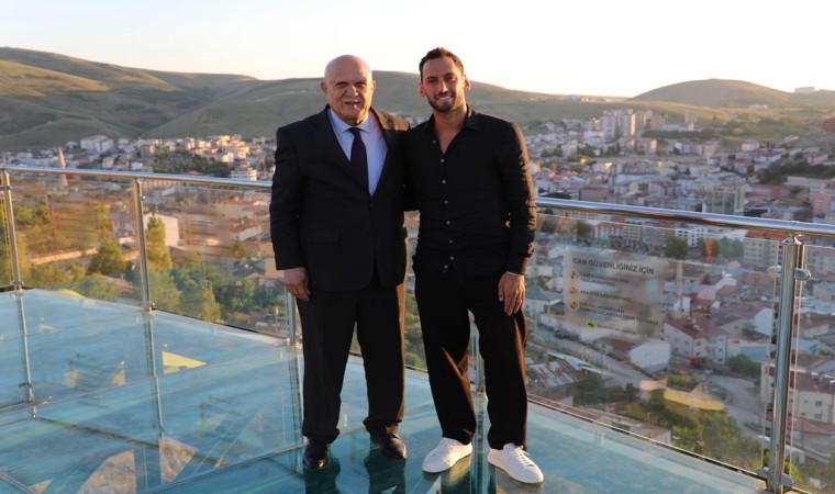 Bayburt Belediyesi ziyaretini tamamlayan A Milli Futbol Takımı kaptanı Çalhanoğlu, Başkan Pekmezci ile birlikte belediye tarafından yakın bir zamanda hizmete açılan Bamsı Beyrek Seyir Terasına geçti. Burada cam terasa çıkan Başkan Pekmezci ile milli futbolcu Çalhanoğlu bir süre şehir manzarasını seyrettiler.