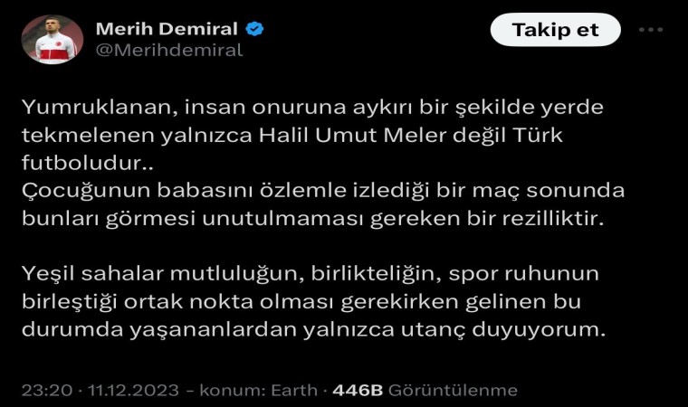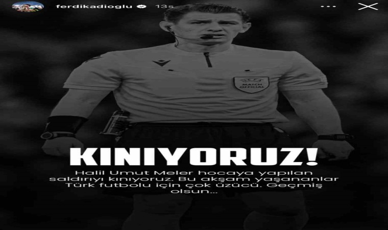 “Halil Umut Meler hocaya yapılan saldırıyı kınıyoruz. Bu akşam yaşananlar Türk futbolu için çok üzücü. Geçmiş olsun”