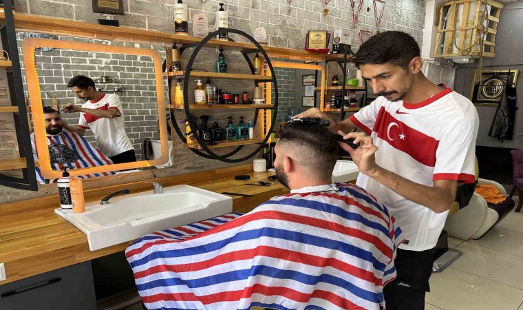 Eskişehir’de kuaförlük yapan İskender Şenel, Ermenistan ile oynanacak milli maça 1 gün kala milli ruhu yaşayarak, Türkiye forması giydi ve müşterilerini traş etti.
