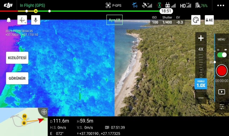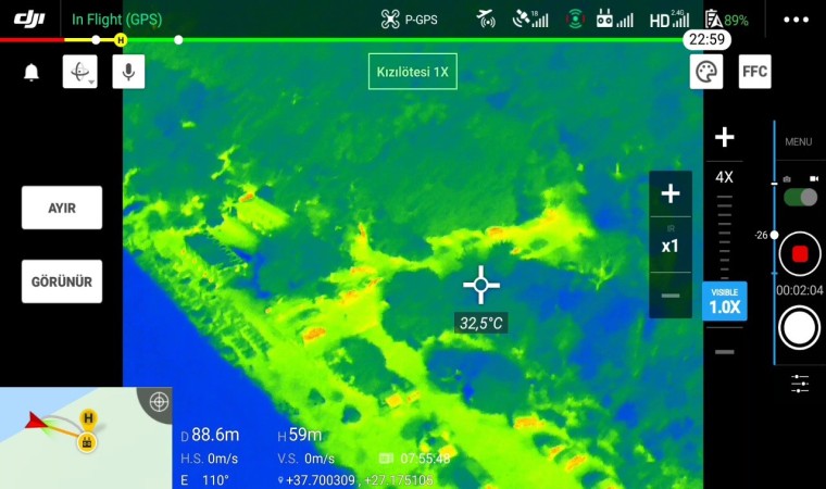 Aydın’da sahaya inen ‘koruyucu kartal’ mikro İHA’lar, Dilek Yarımadası Milli Parkı’nda orman yangınlarına karşı görev yapıyor. Yapılan denetimlerde termal sıcaklık yer yer 60 dereceleri görürken, vatandaşlar orman yangınlarına karşı uyarıldı.