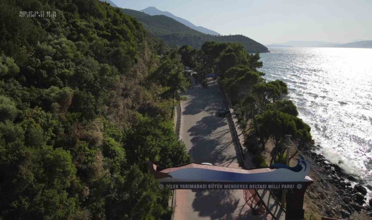 Aydın’da Dilek Yarımadası Milli Parkı başta olmak üzere il genelindeki ormanların yangınlara karşı korunması amacıyla önleyici tedbirler alındı. Bu çerçevede harekete geçen Aydın İl Emniyet Müdürlüğü İnsansız Hava Araçları Büro Amirliği ekipleri ise birçok canlı türüne ve dünyada sadece Türkiye’de bulunan 18 bitki türüne ev sahipliği yapan Dilek Yarımadası Büyük Menderes Deltası Milli Parkı’nda yangın nöbetine devam ediyor. Yangın tedbirleri çerçevesinde koruyucu kartallar iş başına geçerken, termal kameralı mikro İHA’lar yapılan denetimlerde adeta kuş uçurtmuyor. Jandarma ve itfaiye ile koordineli gerçekleştirilen faaliyette havalanan mikro İHA’lar, sık ormanlık alanlarda keşif ve arazi taraması gerçekleştiriyor. Özellikle insan yoğunluğunun fazla olduğu İçmeler, Aydınlık ve Karasu koyları ile Kalamaki Plajı ve Kavaklıburun bölgelerinde gerçekleştirilen denetimlerde plaj giriş çıkışı ve ormanlık bölgelerde termal tarama yapılıyor. Gerçekleştirilen taramalarda termal sıcaklıklar yer yer 60 dereceleri görürken, yüksek sıcaklık değerinin tespit edildiği bölgeler sevk edilen ekipler tarafından kontrol ediliyor. Aynı zamanda ekipler, dron marifetiyle milli parkın koylarında bulunan vatandaşları da orman yangınlarına karşı duyarlı ve dikkatli olmaya çağırdı.